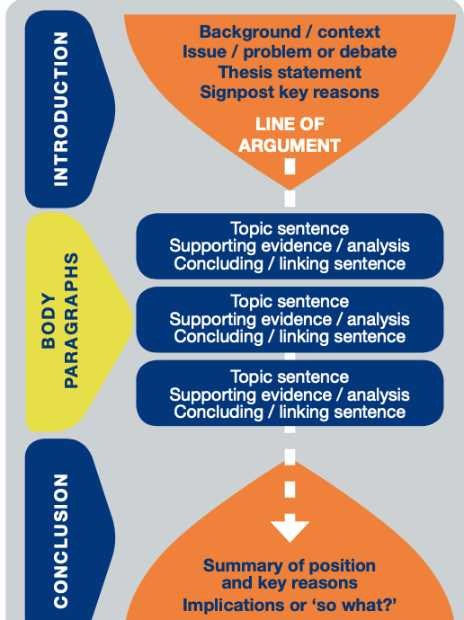 Nguyên tắc tiếp theo yêu cầu sinh viên viết bài luận cần phải trình bày một cách rõ ràng, mạch lạc. Bạn cần chắc chắn bài luận có một cấu trúc cân đối với những phần và phân đoạn có mục đích rõ ràng. Phần mở đầu cần nêu rõ bài luận sẽ nói về/hoặc tranh luận điều gì, và điều đó sẽ được thực (thể) hiện như thế nào (chính là tóm lược kết cấu nội dung với những luận điểm chính của bài luận, hay còn gọi là ‘thesis statement’). Nếu phần nội dung của bài luận nó những luận điểm đối nghịch và mỗi luận điểm lại được bảo vệ bởi những luận điểm khác, cần phân loại thành những mục lớn và mục nhỏ với những dấu hiệu nhận biết rõ ràng để người đọc có thể nhận ra. Phần kết luận chỉ nên tóm tắt lại những gì đã được trình bày trong bài luận mà không nên nói gì khác thêm.